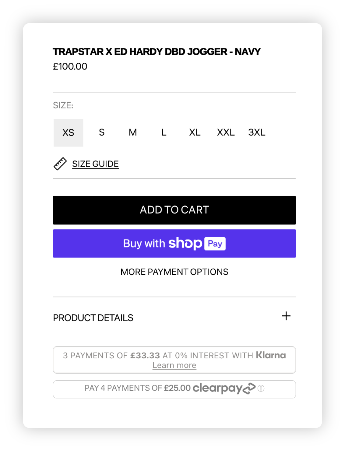 For Trapstar’s product form, I designed a clean layout with the product description placed inside a dropdown. This created more white space and kept the page visually minimal, while still giving users the option to reveal details when needed.